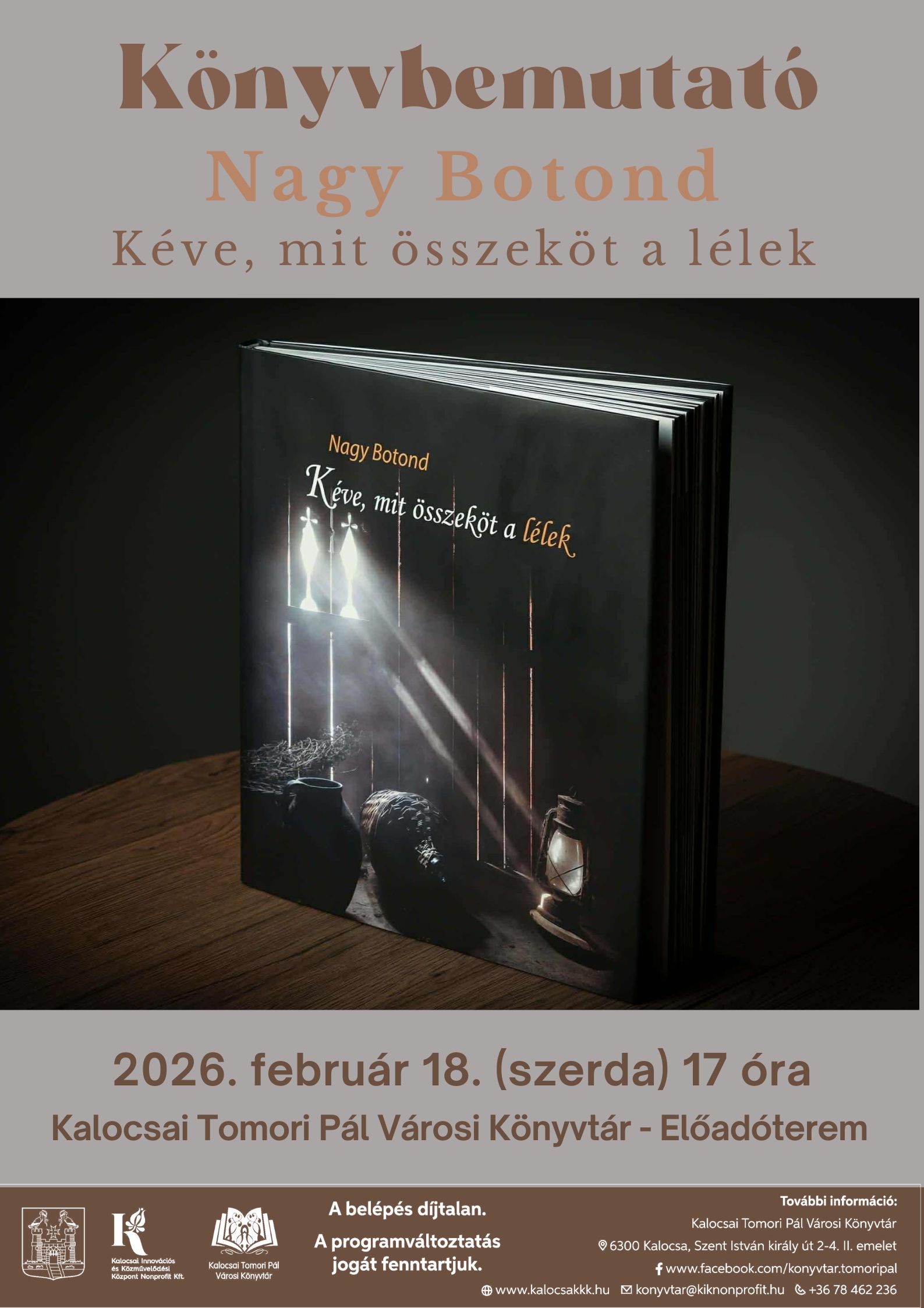 Február 18.-Könyvbemutató: Nagy Botond-Kéve, mit összeköt a lélek