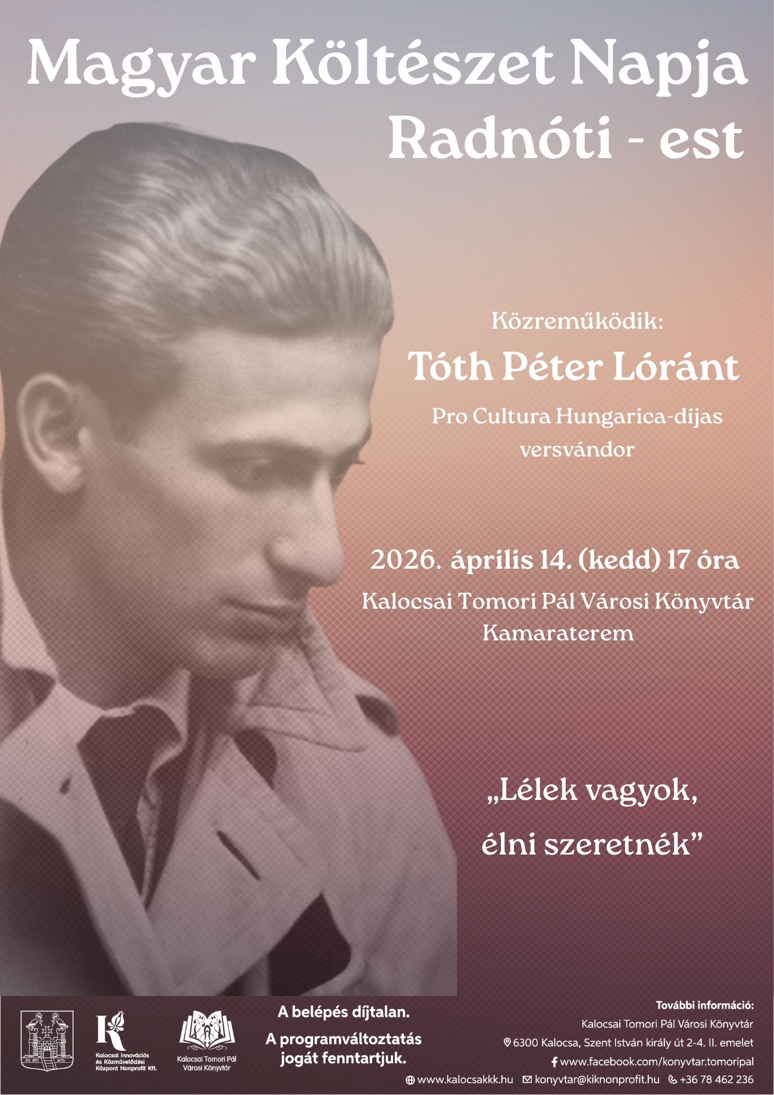 Magyar Költészet Napja: Radnóti-est Tóth Péter Lóránttal 04.14.